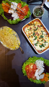 O carro-chefe, é claro, é o galeto completo, servido acompanhado de maionese de batatas, polenta frita, salada e macarrão.